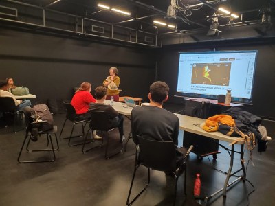 Présentation de travail d'étudiants en éclairage sur des clips de Stomae et obesrvation de travail de maquettes d'étudiants en scénographie.