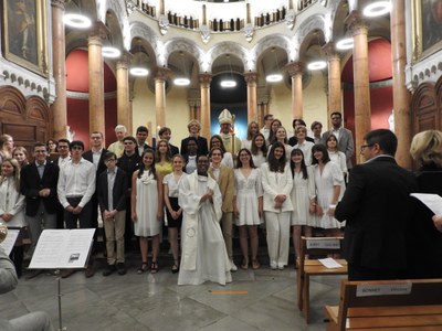 14 élèves et anciens élèves du lycée Belmont ont été confirmés avec leurs camarades des Lycées Saint-Marc et de la Trinité en novembre 2024 en la chapelle du Lycée Saint Marc .