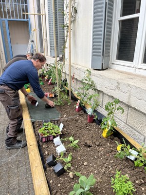 Mercredi 24 mai le potager est opérationnel avec l'aide d'oscar élève de seconde prépas 3. Le potager a été financé par l'apel du lycée